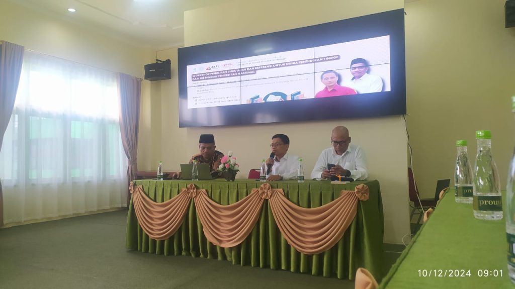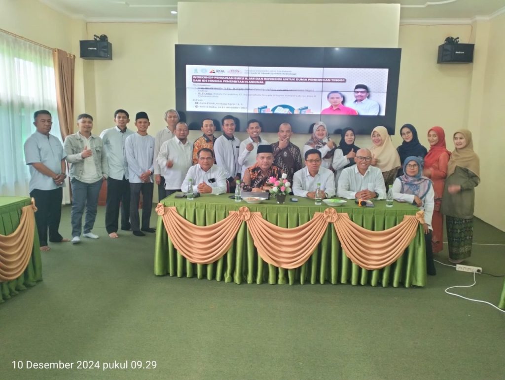 Bukittinggi, 11 Desember 2024 – Dalam upaya meningkatkan kualitas literasi akademik di perguruan tinggi, Pusat Studi AKAL (Agama dan Kearifan Lokal) Fakultas Ushuluddin, Adab, dan Dakwah (FUAD) UIN Sjech M. Djamil Djambek Bukittinggi bekerjasama dengan PT Raja Grafindo Persada sukses menggelar Workshop Penulisan Buku Ajar dan Referensi untuk Dunia Pendidikan Tinggi: Dari Ide hingga Penerbitan Nasional. Kegiatan ini berlangsung selama dua hari, 10-11 Desember 2024, bertempat di Aula FUAD Gedung Egypt Lantai 3, Kampus II UIN Sjech M. Djamil Djambek Bukittinggi.