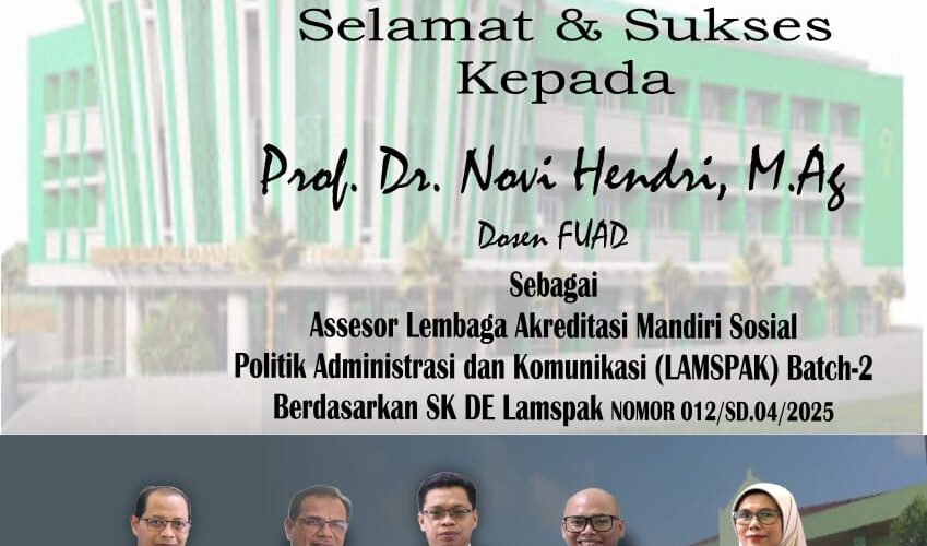 Bukittinggi, (12/06/2025) . Lembaga Akreditasi Mandiri Bidang Sosial, Politik, Administrasi, dan Komunikasi (LAM-SPAK) secara resmi menetapkan Prof. Dr. Novi Hendri, M.Ag sebagai Asesor Mandiri. Penetapan ini menjadi tonggak penting bagi penguatan posisi UIN Bukittinggi di tingkat nasional, sekaligus merupakan bentuk pengakuan atas kompetensi, dedikasi, dan rekam jejak beliau dalam dunia akademik. Sebagai asesor mandiri, Prof. Novi Hendri memiliki peran strategis dalam menilai dan memverifikasi kualitas program studi di berbagai perguruan...Read More
