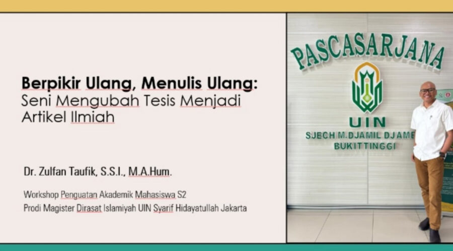 Jakarta, 5 dan 19 Juni 2025 — Fakultas Dirasat Islamiyah (FDI) UIN Syarif Hidayatullah Jakarta menyelenggarakan Workshop Penguatan Akademik bagi mahasiswa Program Studi Magister secara daring melalui platform Zoom Meeting. Kegiatan ini berlangsung selama dua hari, yakni pada tanggal 5 dan 19 Juni 2025, dan menghadirkan Dr. Zulfan Taufik, dosen Fakultas Ushuluddin, Adab, dan Dakwah (FUAD) UIN Sjech M. Djamil Djambek Bukittinggi, sebagai narasumber utama. Dalam workshop ini, Dr....Read More