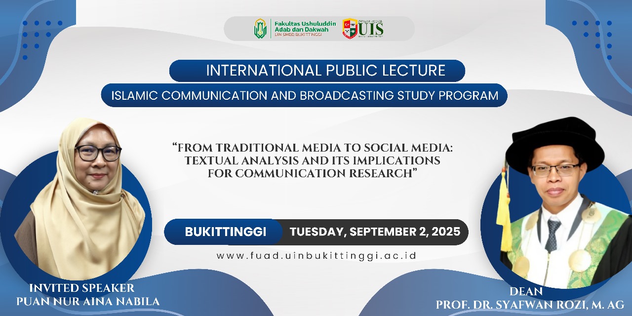Bukittinggi/2 September 2025 – Program Studi Komunikasi dan Penyiaran Islam (KPI) Fakultas Ushuluddin, Adab, dan Dakwah (FUAD) UIN Sjech M. Djamil Djambek Bukittinggi kembali mencatat langkah penting dalam penguatan internasionalisasi pendidikan. Pada Selasa, 2 September 2025, dilaksanakan pembukaan perkuliahan kolaborasi internasiona antara dosen KPI UIN Bukittinggi, Yusuf Afandi, M. Sos, dengan dosen Universiti Islam Selangor...Read More
