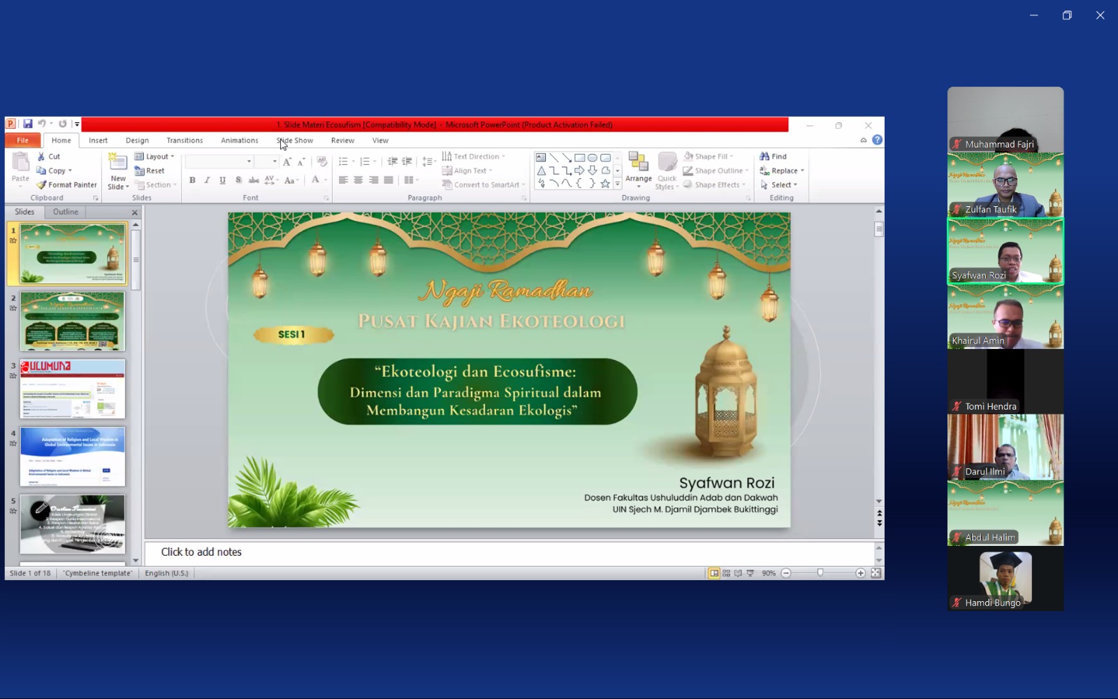 Ngaji Ramadhan Pusat Kajian Ekoteologi FUAD: Ekoteologi dan Ekosufisme dalam Perspektif Islam
